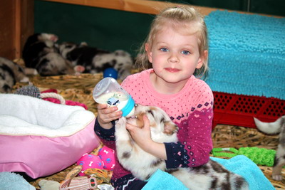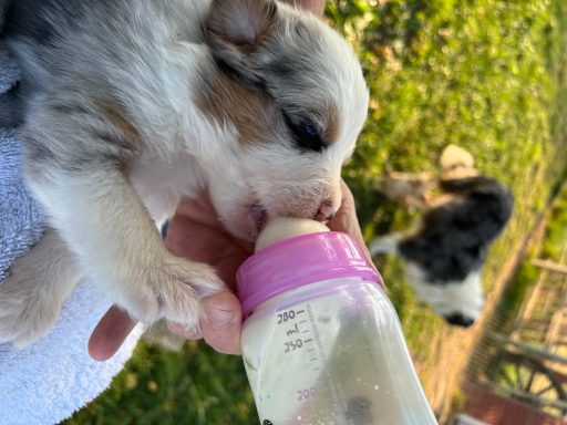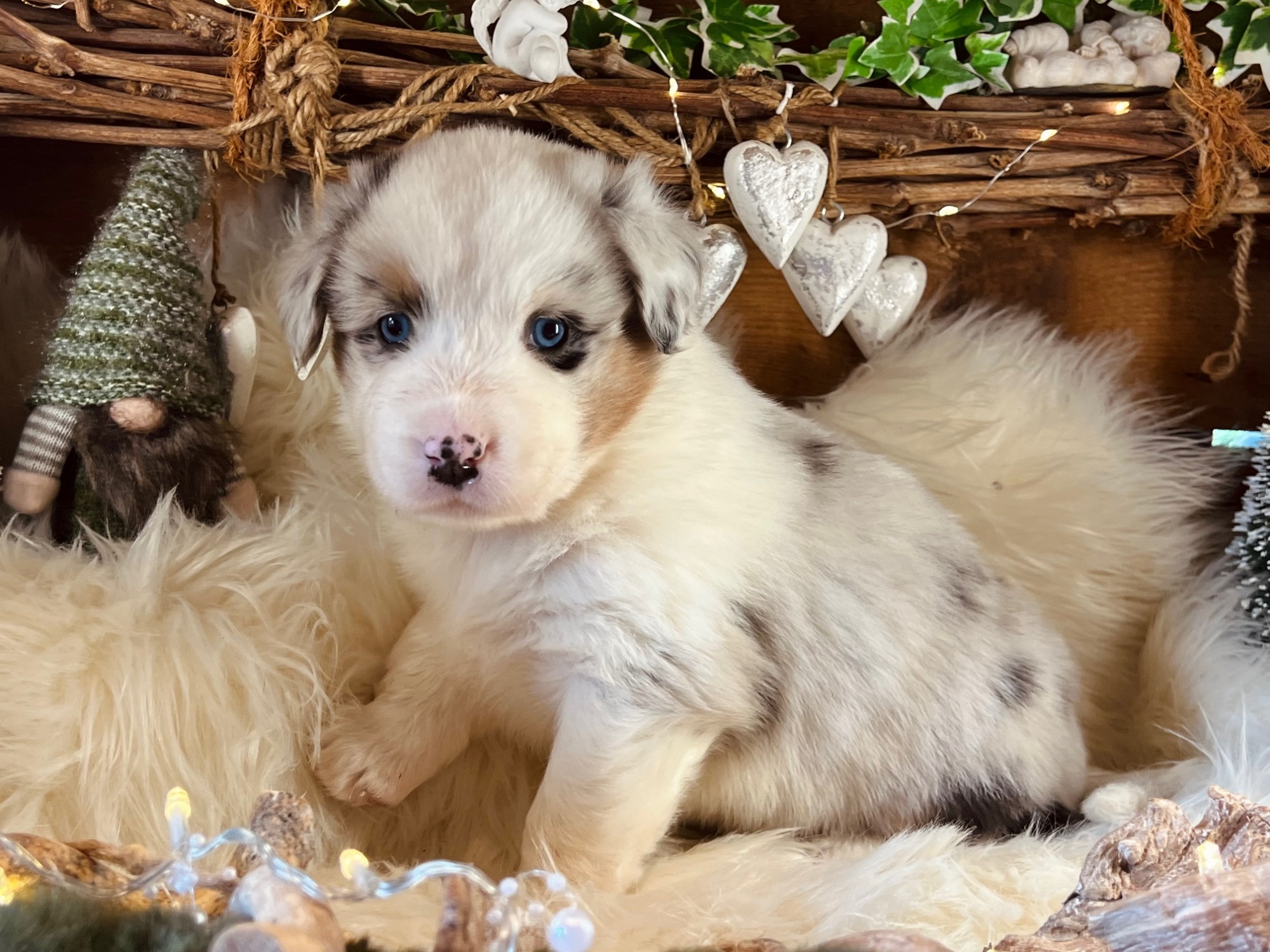 Mit etwa drei Wochen beginnt ein neuer Abschnitt. Die Kleinen ziehen in ihr liebevoll gestaltetes Welpenhaus um – ein sicherer und durchdachter Bereich, der ihnen mehr Raum bietet und ihre wachsende Entdeckerlust aufgreift. Hier dürfen sie erste Erfahrungen außerhalb der Wurfkiste sammeln, neue Reize kennenlernen und sich frei bewegen.